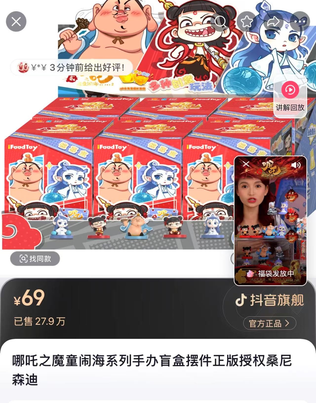 在抖音直播间,另一款《哪吒2》的盲盒摆件销量更是达到了惊人的27.9万!而在社交平台上许多长沙网友在线询问哪里能买到《哪吒2》的盲盒,2月4日有网友发帖称自己从万象城到凯德壹再到大悦城连跑了三个大商场都卖断货了。