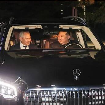 【金正恩的新款奔驰第一次公开!】平壤时间9月14日凌晨,金正恩亲自开着新款奔驰将老朋友绍伊古送到机场。金正恩向绍伊古亲切告别的同时,还请绍伊古转达对普京的问候: